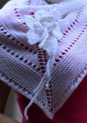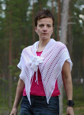 Malliltaan huivi on hyvin yksinkertainen. Sen jujuna on irrotettava ja siirrettävä kukkakoriste. Kukat kiinnitetään huivin reikäriveihin napeilla.