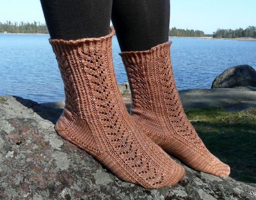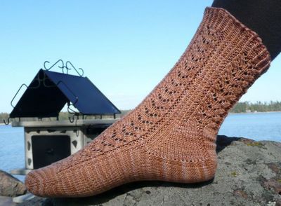 Sukkien idea lähti Ravelry-vaihdosta, jonka teemana oli projekti. Nämä sukat ovat minun projektini. Sain pariltani vaihtopaketissa lankaa sekä Charlene Schurchin kirjan:” More sensational knitted socks”. En niinkään innostunut kirjan valmiiden sukkien malleista, mutta lopussa olleet useat mallikerrat, jotka pääosin olivat perinteisiä mallikertoja, innostivat, kuten tähän sukkaan käytetty saniaismallikerta. Sieltä se idea sitten lähti. Tälle mallikerralle on selvästi edullisempaa tulla neulotuksi varpaista alkaen.