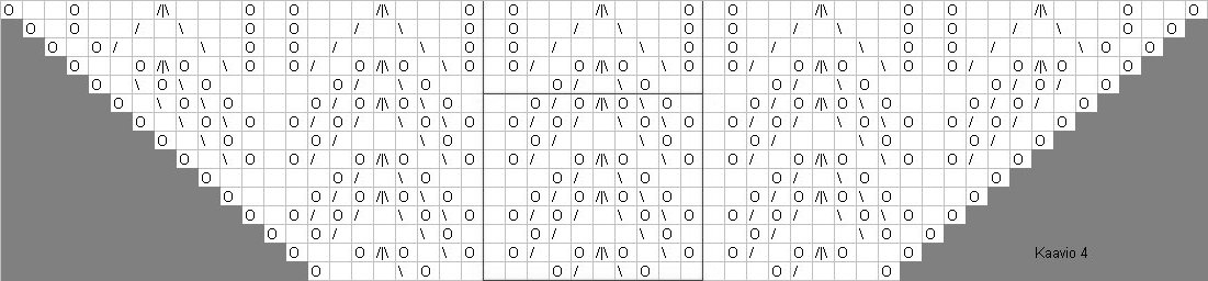 Siirry kaavioon 4 ja neulo se kerran. Ohjeen mukaisessa huivissa ei tarvitse välittää rajauksessa olevasta poikkiviivasta.