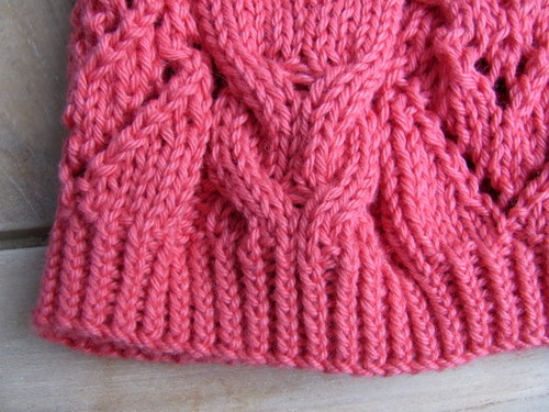 Neuloin testissä olevasta kerästä kesäpipon, jossa on hiukan pitsiä ja hiukan palmikkoa. Testineuleessa käytin 3,0 mm puikkoja. Tällä puikkokoolla joustimesta tuli mukavan napakkaa ja pitsiosuudesta sopivan laskeutuvaa. Syntyvä neulepinta on suoraan puikoilta pingottamattomana mukavan tasaista. Lanka tuntuu sopivan hyvin pipoihin ja käyttäisin sitä itse mielelläni myös muissa asusteissa ja paidoissakin. Suuren puuvillapitoisuuden vuoksi tosin hiukan epäilyttää, miten langasta neulottu joustin pidemmässä käytössä mahdollisesti löystyy tai venyy. Lanka on pehmeää ja viileän tuntuista. Se sopii siis hyvin ihmisille, joita karheammat villalangat kutittavat.