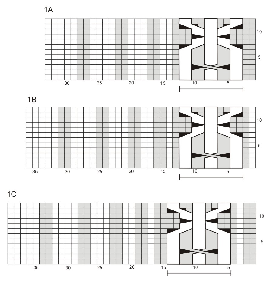 Tiheydellä 28 s ja 40 krs: A = 37–39, B = 40–42 ja C = 43–45