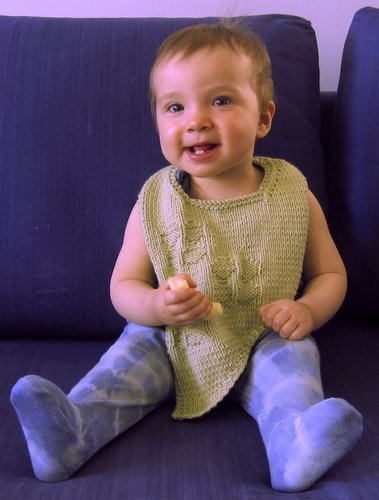 kuitenkin käytännöllistä. Nopeasti keksinkin neulesuunnitteluni kohteen: lapseni sotkee ruokalappuja nopeammin kuin ehdin niitä pestä,