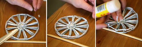 Samalla kun puristat liimausta sen kuivuessa, voit sormilla hieman muotoilla terälehtiä pyöreämmiksi.