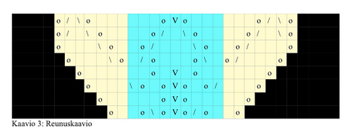 Neulo sitten yhden kerran reunuskaavio eli kaavio 3. Päätä silmukat löyhästi.