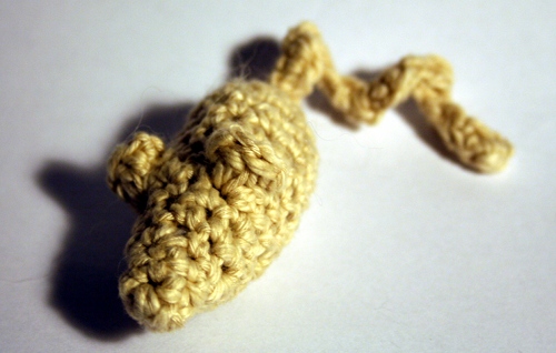 Kihara häntä: Virkkaa 12 ketjusilmukkaa, käänny ja virkkaa ketjusilmukoihin 24 kiinteää silmukkaa.