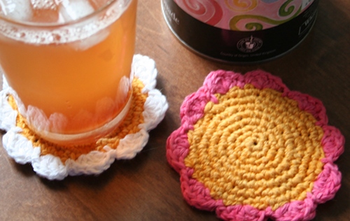 hauskaa tunnelmaa mökille tai keittiöön. Rauhallisemmista väreistä virkattuina