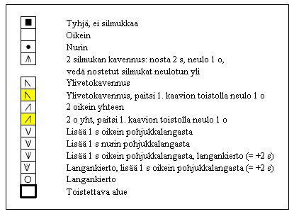 3. puikko: *2 n, 2 o*, toista *-* kolmesti (16 s)