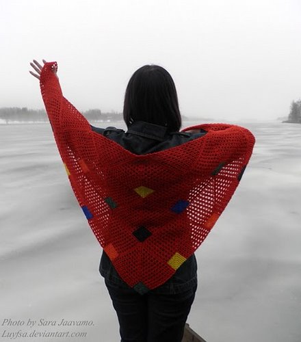 huivin opinnäytetyönäni. Tässä huivissa on yhdistetty dominotekniikkaa ja