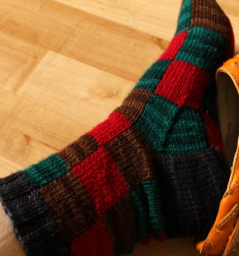 Tilkkujen ja värien määrä on täysin sinun päätettävissäsi. Voit myös muuttaa tilkkujen kokoa tai jättää ne esim. jalkapohjasta pois ja neuloa sen yksivärisenä. Kantalapun voi jakaa kahdeksi eriväriseksi tilkuksi.