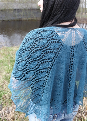 Myrskylintu-huivissa yhdistyvät kolme itseäni viehättävää ominaisuutta: suosikkipitsini, sileän neuleen ja pitsin yhdistelmä sekä epäsymmetrisyys. Ylöspäin kaartuva muoto helpottaa huivin pukemista. Runsaamman pitsin tai symmetrian ystävä voi halutessaan korvata myös toisen reunan sileän sektorin pitsillä.