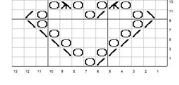Seuraavalla kerroksella neulo kavennuskerros *9 – 10 – 11 o, 2 n