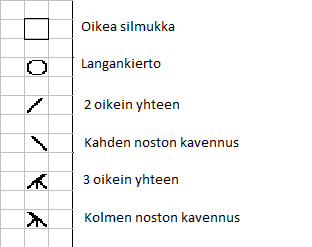 Neulo kavennuskerros *10 – 11 – 12 o, 2 n yht*, toista *–*