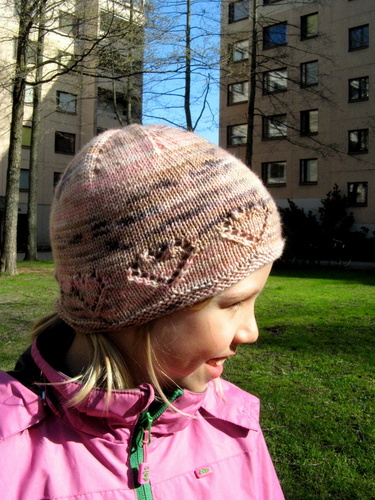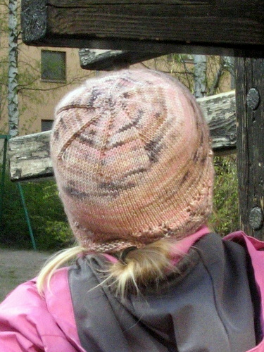 Langaksi valikoitui Colinetten Jitterbug, jota alkuperäinenkin pipo kuulemma oli ollut. Ohut merinovilla on pehmeää ja sopivan lämpöistä. Valitettavasti en tiedä värin nimeä, sillä vyyhti on peräisin merkitsemättömästä sekoituspussista.