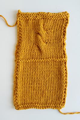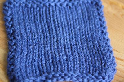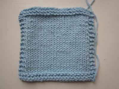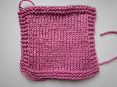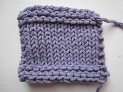 Neuloin mallitilkun helmineuletta 4,5 millin puikoilla. Pinnasta tuli kauniin laskeutuva, mutta kuitenkin peittävä. Koska itselläni on yleisesti ottaen mieluummin löyhä käsiala, tuntuu vyötteen viiden millin puikkosuositus oikein sopivalta. Tilkkuni tiheydeksi sain 20 silmukkaa kymmenellä senttimetrillä eli lähelle vyötteen suositusta.