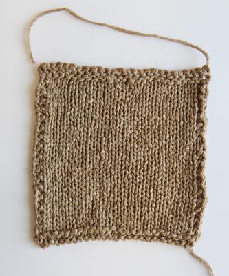 Minusta Linosta oli helppo neuloa tasaista pintaa. Käytin mallitilkussa 4 millin bambupuikkoja, joilla sain suositusta hieman tiiviimmän pinnan eli 21 silmukkaa ja 30 kerrosta kymmenellä sentillä. Lanka toimii mielestäni hyvin tälläkin tiheydellä ja voisin ajatella neulovani sillä esimerkiksi neuletakin.