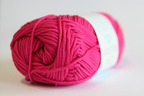 Norjalainen Mandarin Medi on peruspuuvillalanka, jossa on kaunis kiilto ja neulepinnasta tulee siistiä ja tasaista. Medi sopii vauvojen neuleisiin, lastenvaatteisiin ja myös aikuisille. Se toimii myös virkkaamisessa. Värivalikoimassa on niin hempeitä sävyjä kuin kunnollisia perusvärejäkin. Eri sävyvaihtoehtoja on yhteensä 18. Testilangaksi päätyi pinkki, jonka värinumero on 4616.