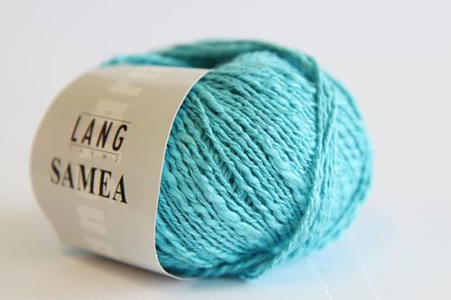 Lang Yarnsin Samea on puuvillasekoitelanka jossa on puuvillan lisäksi mukana viskoosia ja hieman pellavaa. Langassa on mukavasti värejä, 18 erilaista, jotka näyttävät olevan pääosin kesäisen kirkkaita. Se onkin piristävää sillä kesälangat tuppaavat usein olemaan aika haaleavoittoisia.