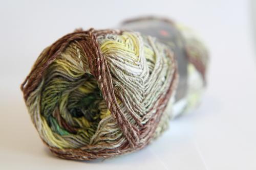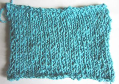 Cascade Yarns Sierra on puuvillaa ja villaa sisältävä uutuus, jonka värikartassa on käsittämättömät 105 eri värivaihtoehtoa. Osa niistä on monivärisiä siten, että lanka koostuu keskenään erivärisistä säikeistä, jotka muodostavat sekä hyvin hillittyjä että räväköitä yhdistelmiä. Langan kierre on melko olematon, mutta säikeet ovat niin paksuja, että lankaa on helppo neuloa sen säikiintymättä. Testitilkun neuloin viiden millin puikoilla, jotka ylittävät suosituspuikot puolella millillä. Tiheydeksi tuli 18 silmukkaa kymmenellä sentillä vyötteen ilmoittaman 20 silmukan sijaan, mutta pinta on oikein mukavaa näinkin.