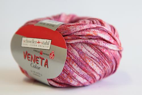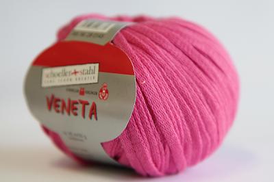 Yksiväristä Venetaa saa kymmenessä eri värissä, joissa ovat mukana kesän sesonkivärit pinkki ja oranssi, mutta myös klassisemmat valkoinen, luonnonvalkoinen ja musta. Langasta saaneekin hauskan pitsisen kesäboleron – vaikkapa virkattuna. Spray-värjättyä Veneta Coloria on saatavilla viidessä erilaisessa roiskeisessa värissä, joista testattavana oli pinkkiin taittava daalia. Muita värejä ovat virheään taittava, siniseen taittava ja kolme sekoitettua väriä, joista vaikutelmaksi jää lähinnä rusehtava yleisilme.