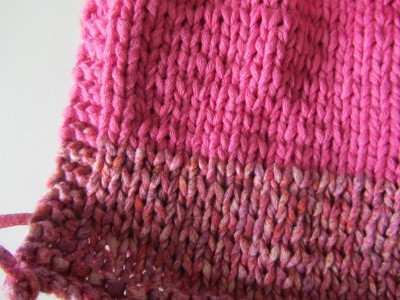 Langassa on hauska viileän puuvillainen tuntu, mutta ilmeisesti villan ansiosta se kuitenkin vetää joustinneuleena napakasti kasaan. Käsialavirheille lanka ei silti ole kovinkaan armollista. Langan ainoa suuri vika on, että se päästää aivan valtavasti väriä huuhtelussa. Huuhtelija kyllästyi ennen kuin värin irtoaminen loppui…