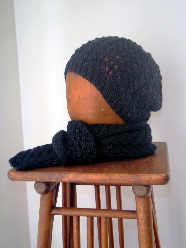 Romanttisten pitsiasusteiden innoittajana toimi teini-ikäinen tyttäreni, jonka maku on vielä toistaiseksi varsin kaupallinen. Pitsinen, rento pipo ja kapea huivi valmistuvat nopeasti paksusta langasta. Neljä 50 gramman kerää riittää mallineuleille. Neulo ensin pipo ja loppulangasta huivi. Mallihuiviin käytettiin piposta ylijäänyt vajaa kerä ja 2 kokonaista kerää.