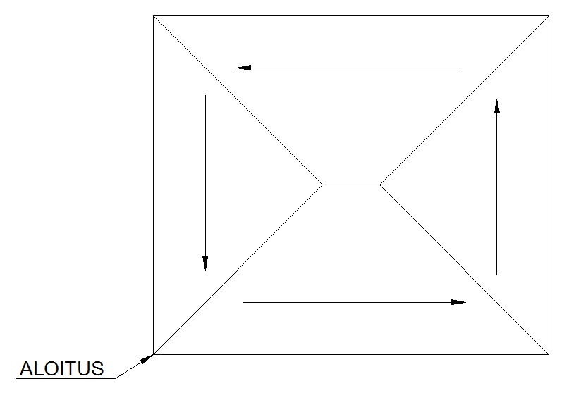 Nosta aloituskolmion reunasta 29 s, katso kuva 2.