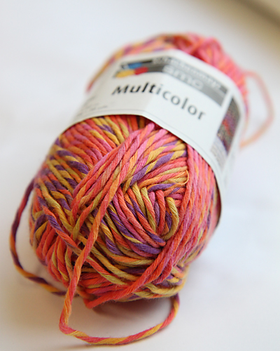Multicolour on nimensä mukaisesti hyvin kirjava lanka. Kun väriällötyksen yli pääsee, huomaa, että kyseessä on mukava ja helposti neuloutuva puuvillalanka.