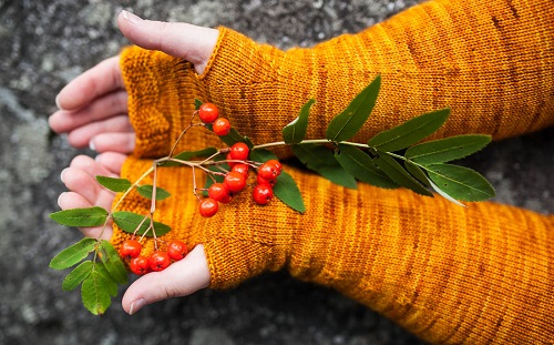 Menneenä kesänä ja syksynä olen neulonut monta paria pitkiä, yksinkertaisen sileitä kämmekkäitä. Kauniin syksyinen Markkalanka kuitenkin suorastaan vaati jotakin erityistä kuviota neuleeseen. Löysin nätin palmikon Elsebeth Lavoldin Viikinkineuleet -kirjasta, mutta neuleessani se alkoikin heti alkuun elää omaa elämäänsä ja muotoutui lopulta aivan uudeksi kuvioksi.