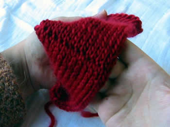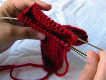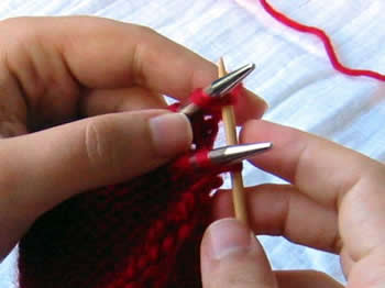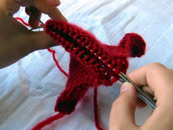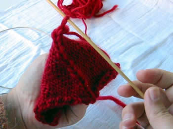 Vie apupuikko molempien kappaleiden ensimmäisen silmukoiden läpi ja neulo silmukat melko löyhästi oikein yhteen.
