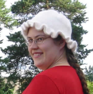 Lanka ja langan menekki Drops Angora Tweed (30% angora 70% merinovilla, 50 g = 145 m), 100 g, luonnonvalkoinen (10). Huom! Jos haluat tehdä useamman mallitilkun, varaa ylimääräinen kerä. Käyttämäni langan suositustiheys oli 20/21 s ja 26/28 krs sileää neuletta ja puikkosuositus 3,5-4,5 mm. Jos korvaat langan, valitse huopuva lanka jolla on vastaava suositustiheys. Hatun pörröinen pinta syntyy angorasta, esimerkiksi alpakka- tai mohairsekoitteella voi saada samanlaisen efektin. Neuletiheys 18 s ja 24 krs sileää neuletta ennen huovutusta = 10 cm Puikot Pyöröpuikko 4,5 mm Koko Naiselle, pään ympärys noin 53-57 cm OhjeLuo 396 s. Neulo 1 krs oikein ja jatka suljettuna neuleena. Varo kiertämästä työtä, kun yhdistät neuleen päät! Neulo 5 krs oikein. Neulo tämän jälkeen kavennuskerros: *neulo 2 oikein yhteen, 1 oikein*, toista *-*. Työssä on nyt 264 s. Neulo 3 krs oikein ja toista sitten kavennuskerros. Työssä on 176 s. Neulo vielä kerran 3 krs oikein ja vielä yksi kavennuskerros. Työhön jää 117 s. Jatka sileää oikeaa, kunnes kappaleen korkeus lierin viimeisestä kavennuksesta mitattuna on 19 cm (korkeus lierin reunasta mitattuna on noin 25 cm). Aloita kuvun päällinen: neulo seuraavan kerroksen ajan aina 2 o yhteen (neulo viimeinen, pariton silmukka oikein). Työssä on nyt 59 s. Siirrä työ tarvittaessa sukkapuikoille. Neulo 6 krs oikein ja toista kuvun kavennus. Työhön jää 30 s. Neulo 3 krs ja toista jälleen kuvun kavennus. Jäljelle jää 15 s. Neulo 1 krs ja toista kavennuskerros vielä kerran. Vedä lanka jäljellä olevien 8 silmukan läpi ja kiristä aukko umpeen. Päättele. Pese hattu normaalissa pesuohjelmassa 60 asteessa (tai mallitilkkusi sopivaksi osoittamassa ohjelmassa ja lämpötilassa). Laita mukaan pyyhe tms. Varaudu siihen, että angora nukkaa kovasti pesussa. Jos hattu ei huopunut tarpeeksi, sen voi pestä uudelleen. Tällöin kannattaa käyttää lyhyempää pesuohjelmaa ja kevyempää linkousta. Jos taas hattu kutistui liikaa, sen voi kastella läpikotaisin ja varovasti venyttää käsin sopivan kokoiseksi ja muotoilla sitten käyttäjän pään mukaan. Anna hatun kuivua mieluiten jonkun sopivan kokoisen esineen päällä,