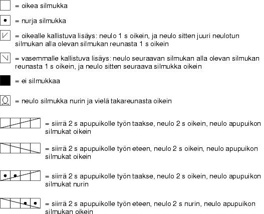 Ohje: Kristel Nyberg Kuvat: Mirva Salminen - Ohjeet Tuulia Salmela: Johanna Koski: Marja Venäläinen: Anne Mäki-Puhtila: Marja Venäläinen: Kristel Nyberg: DistantKnitter: Susanna V: Johanna Pajakoski: Marjut Katajala: Marja Venäläinen: Ninni: Marjut Katajala: Kristel Nyberg: Kristel Nyberg: Pia Tuononen: DistantKnitter: Marjut Katajala: DistantKnitter: Aineiston © sen tuottajalla. Kaupallinen käyttö ehdottomasti kielletty. Lisää tietoa Kysy Ullalta -sivulla. |