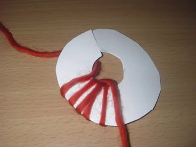 - Pujota kaksinkertainen lanka pahviympyröiden väliin