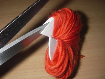 - Leikkaa langat poikki ympyrän ulkosivulta, pahviympyröiden