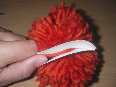 välistä. Pidä langoista kiinni jottei tupsu hajoa.