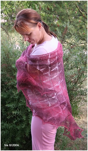 Huom! Lanka ja langan menekki eivät ole tärkeitä. Voit tehdä huivin seitinohuesta Merinosilkistä tai Kid Silk Hazesta yhtä hyvin kuin Novitan Teddy -langastakin. Tee minihuivi mallitilkuksi, jos epäilet langan sopivuutta. Vinkki: Huivin pykäreunakuvioon ja päättelyyn menee lankaa suunnilleen yhtä paljon kuin viimeiseen kokonaiseen salmiakkiriviin. Jos lankaa on rajallisesti tarjolla, käytä keittiövaakaa tai vaikkapa kaupan hedelmävaakaa sen punnitsemiseen. Neuletiheys Neuletiheys ei ole kovin tärkeä, sillä huivien ei tarvitse olla tarkoin mitoitettuja. Pitsineuleissa kannattaa suosia ohjetta löysempää tiheyttä, jolloin pitsimäisyys tulee selkeämmin esille. Oman maun mukaan voit tehdä kuvion myös napakampana. Puikot Valitse puikot oman mieltymyksen ja oman käsialan mukaan. Hiukan vyötteen suositusta tai normaalisti käyttämääsi suuremmat puikot tekevät pitsimäisemmän jäljen, normaalikokoisilla jälki on tiiviimpää. Pyöröpuikot ovat kätevät varsinkin loppuvaiheessa, jolloin silmukoita on enemmän: silmukat ja koko neulottu työ lepäävät sylissäsi eivätkä rasita käsiäsi neuloessasi. Pitkät suorat puikot ovat hyvä valinta jos olet niitä tottunut käyttämään. Muut tarvikkeet Pingoitusta varten tarvitset erottuvan väristä lankaa ja nuppineuloja sekä lankojen päättelyä varten virkkuukoukkun ja/tai silmäneulan. Valitse koukku käsialasi mukaan. Koko Voit muuttaa huivin kokoa lisäämällä tai vähentämällä mallikertoja. Huivin kokoa voit muuttaa materiaalia, käsialaa ja mallikertoja vaihtamalla aina pienestä nuken huivista suuren hartiahuiviin asti. Jos huivin koko on hyvin tärkeä, tee pieni mallihuivi ja viimeistele se ennen oikean huivin aloitusta; kostutus ja pingoitus suurentaa useimmista materiaaleista tehtyjä huiveja huomattavasti. Käytä mallihuivin mittoja ennen ja jälkeen pingotuksen apuna oikean huivin mittojen määrittämiseen. Punaisen huivin koko: korkeus 120 cm, leveys 233 cm.