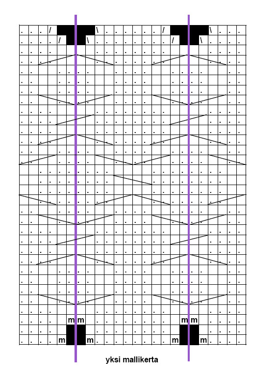 välissä neulot yhden välikerroksen sileää. Tämän jälkeen jatka kavennuksia