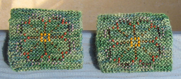 Helmirannekkeet ovat pieni ja helppo työ, jossa voi kokeilla helmien neulomisen eri tekniikoita. Suunnittelin tämän helmien neulontaa käsittelevän artikkelin lisäksi. Vinkkejä helmien värin ja koon valintaan voit katsoa artikkelista. Kukkarannekkeessä kokeilin eri väristen helmien yhdistämistä kuvioksi. Kuvio on perinteinen kirjoneulemalli. Tekniikka on tässä yksinkertaisimmillaan, vaikein osa on helmien pujottaminen lankaan. Helmet pujotetaan järjestyksessä ja neulotaan kuvion mukaan työn edetessä nurjalla puolen, jolloin helmet tulevat näkyviin oikealla puolella nurjien silmukoiden lankalenkkeihin. Ohjeessa on yksivärimalli, mutta jokainen saa vapaasti kehittää oman variaationsa. Malli toimii myös yksivärisenä.