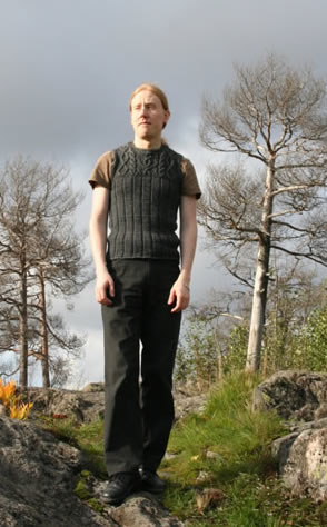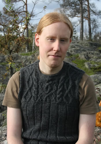 Nykyajan Lemminkäinen lähtee aamuisin urheana useammin uhmaamaan toimiston ilmastointia ja katujen viimaa kuin Pohjolan sotaa. Niinpä Lemminkäinen onkin pehmoinen villaliivi, sopiva myös miehelle jota ahdistavat pitkät ja kuumat hihat villapaidassa. Lanka ja langan menekki Schoeller+Stahl Limbo (100% superwash villa; 125 m / 50 g), tummanharmaa (väri 4588)