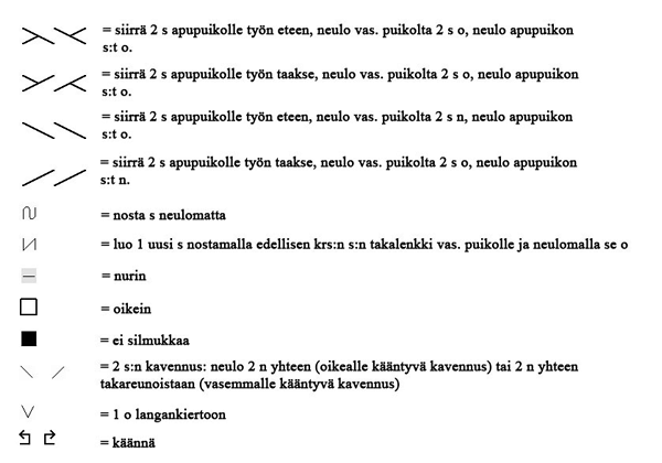 Ohje on molemmille takeille olennaisilta osiltaan sama. Neuleiden erot on selitetty sanallisesti ja kaavioin. En suosittele
