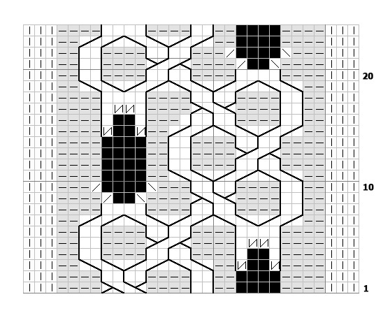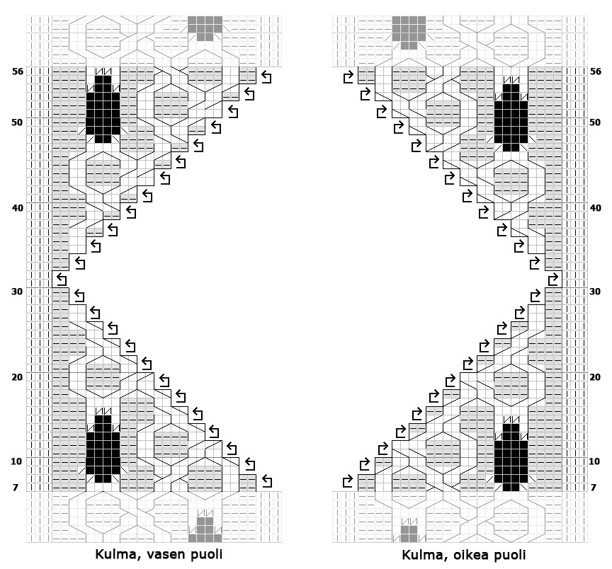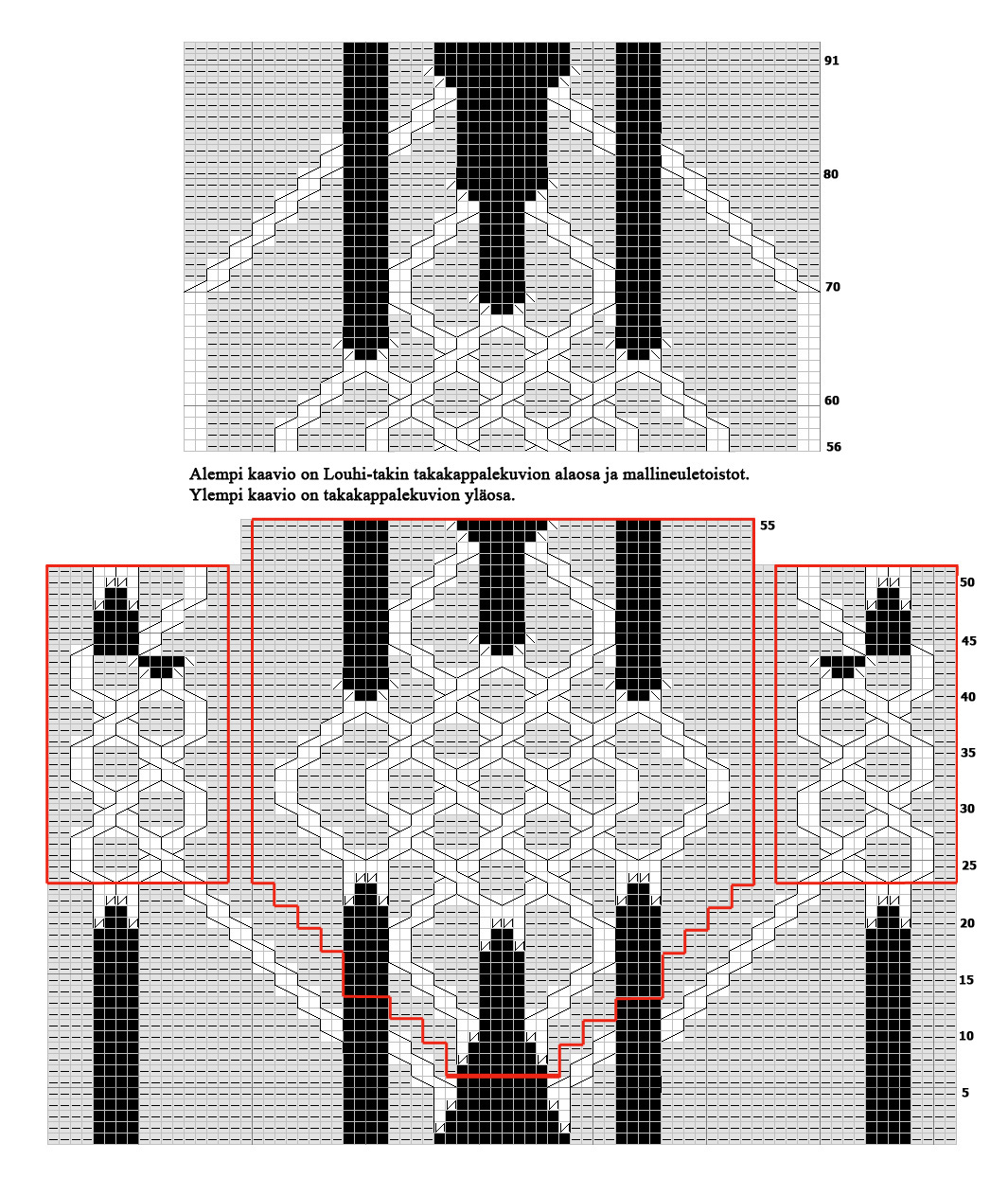 alussa ja lopussa. Suunnittele kuvion neulominen huolellisesti, ja piirrä taikka kopioi kaaviot valmiiksi ennen