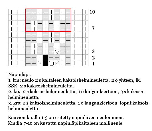 Louhiin voit neuloa nappilistat kaavion 5 mukaan (listan voit neuloa reunuksen ja vartalo-osan kanssa yhtä aikaa,