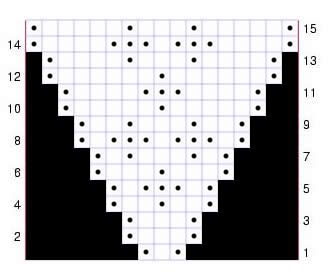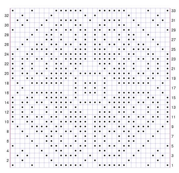 Kämmenosa ja peukalokiilaLisää ensimmäisellä sileällä kerroksella yksi silmukka 2. puikon loppuun, nyt kämmenselän puolella on 33 s. Aloita kirjoneule 4. puikon alussa. Neulo 1. puikon lopussa ja 4. puikon alussa yksi silmukka aina valkoisella. Neulo kämmenpuolen kirjoneuleena kaavion 1 mukaista kuviota. Aloita samalla peukalokiila.