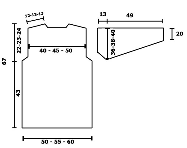 Jatka mallineuletta, kunnes korkeus kädentieltä on 19-20-21 cm, neulo sitten olat kuten