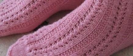 Toista kantalapun kahta kerrosta 10 - 12 - 14 - 16 kertaa (20 - 24 - 26 - 32 krs). Neulo seuraavaksi ranskalainen kantapää (ohje Ulla 02/06):