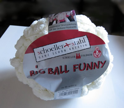 Big Ball Funny on nimensä mukaisesti iso pallo: painoa kerällä on kaksisataa grammaa ja kokoa löytyy vauvan pään verran. Rakenteeltaan lanka on hauskaa, siinä on pehmoisia pörhöpalleroita pujoteltuna ohuehkoon tukilankaan. Vaikka olenkin hieman epäluuloinen erikoislankoja neuloessani, Funnya oli yllättävän mukava neuloa - vain purkaminen ei ollut kivaa. Neuloessa ei siis kannata tehdä liikaa virheitä.