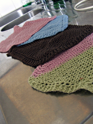 Pidemmän käytön myötä olen myös huomannut, että ainaoikeinneuleiset neliönmuotoiset ja tarpeeksi isot rätit ovat kaikkein miellyttävimmät käyttää. Tietysti olemassa pitää myös olla kauniimpia ja edustuskelpoisempia kuvioneuleisia tai erikoisen muotoisia rättejä kyläilevien vieraiden ihmeteltäväksi. Onneksi netti on pullollaan mitä kauneimpia ja erikoisempia tiskirättimalleja.