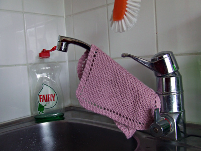Maailmalla riehuneen tiskirättimanian ja eräiden kanssaneulojien yllyttäessä minäkin päätin rohkaista mieleni ja neuloa tiskirätin. Helppoa sen aloittaminen ei ollut, sillä suuret ennakkoluulot varjostivat ajatusta neulotuista tiskiräteistä: ei se mitään ime, se vaan haisee, ne ovat ihan tyhmän näköisiä hanan päällä roikkumassa...