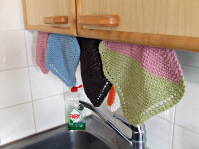 Kokoelmassani on kolmesta eri langasta neulottuja rättejä: kolme Novitan Bambusta sekä yksi sekä Novitan Tennesseestä että Suvista. Kaikki tiskirätit on testattu ääriolosuhteissa, eli allekirjoittaneen keittiössä. Ehdottomat testivoittajat ovat Bambusta neulotut rätit, jotka paitsi kuivasivat hienosti pöydälle läikkyneen veden, irrottivat liedestä kokkailun myötä syntyneet jo hieman kuivuneet tahrat leikiten, myös selviytyivät mikroon juuttuneesta kaurapuurosta ilman ongelmia! Näitä tarvitaan lisää.