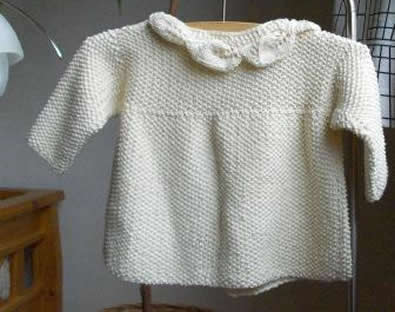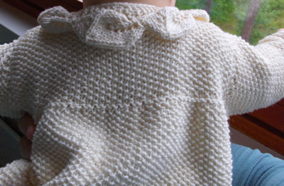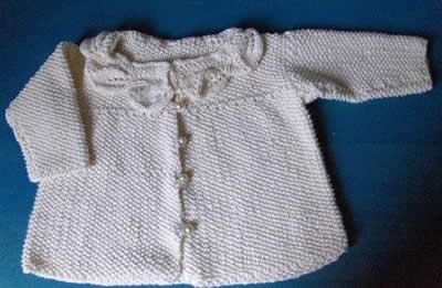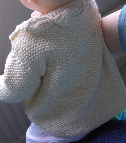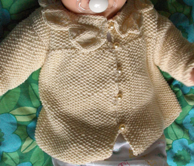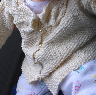 Ei helmikana, vaan helmitipu, koska tämä takki on pienille tytöille. Helmineule puuvillalangalla tekee helmoista kauniisti laskeutuvat. Pitsinen lehtikaulus ja kauniit napit viimeistelevät istuvan takin.
