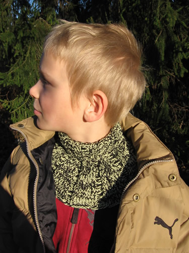 Vyötteen tiheys ei ole merkitsevä, koska kauluri neulotaan suositusta pienemmillä puikoilla.